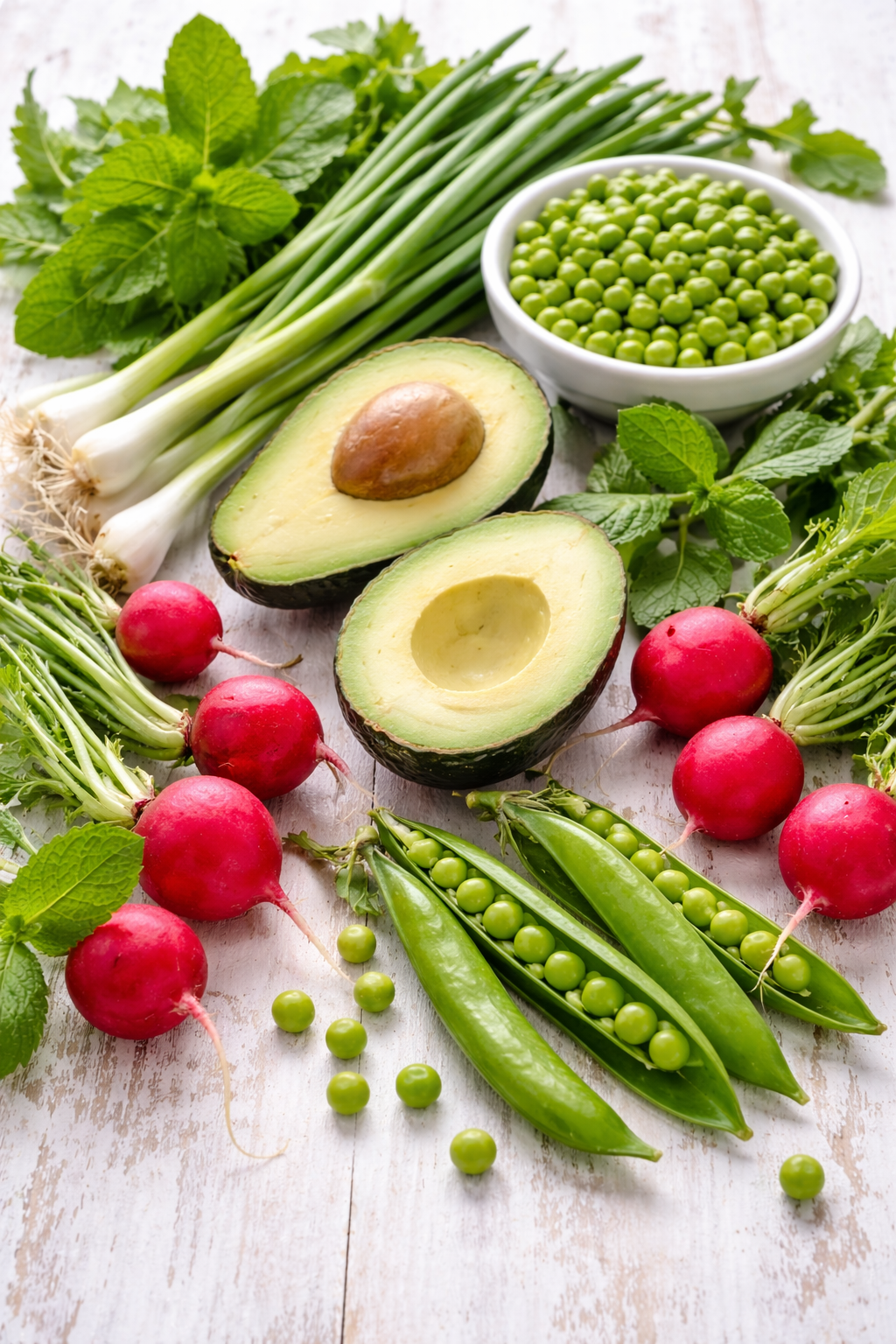 Insalata tiepida di piselli con cipollotti, ravanelli e menta