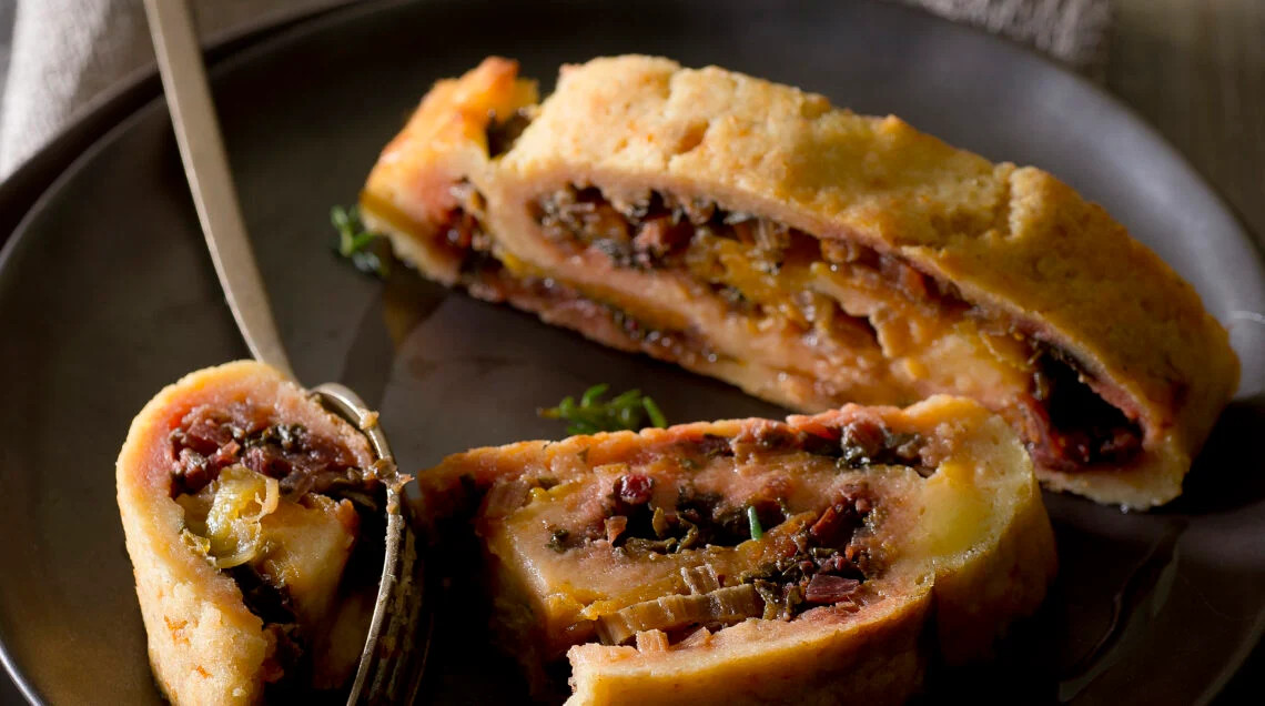 Strudel ai funghi con castagne e ceci